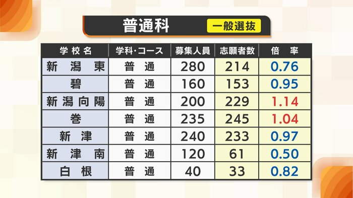 新潟県教育委員会は2月26日、公立高校一般入試の変更後の最終志願倍率について発表した。