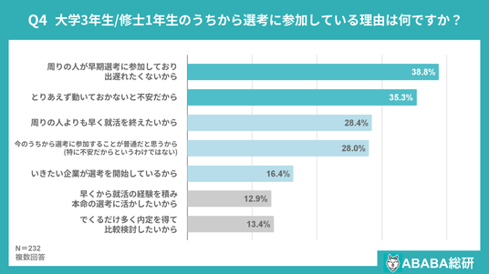 Q4. 大学3年生/修士1年生のうちから選考に参加している理由は何ですか?(複数回答)