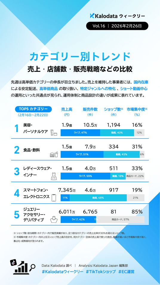 本レポートは、TikTok Shop関連データをもとに、Kalodata(カロデータ)が独自に収集・分析した情報に基づいています。