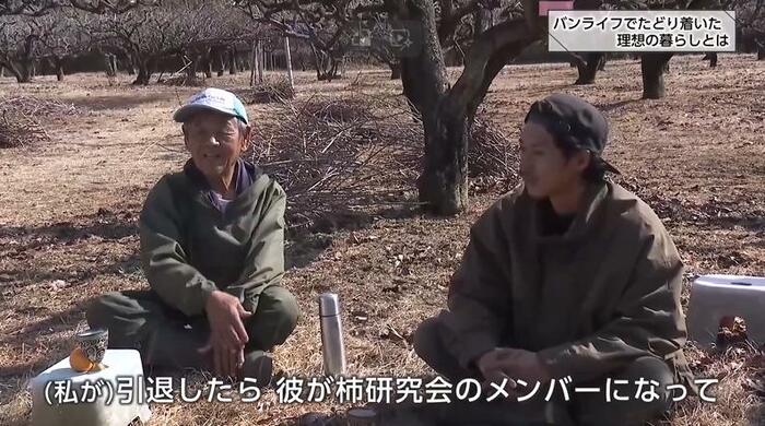 指導するのは柿農家の小弁野忍さん(81)。父親が始めた柿園を28年前に受け継ぎ、夫婦2人で守り続けてきた。柿農家を辞めるつもりでいたところ、堀さん家族と出会ったという。堀さんを「福の神のようだ」と話す。