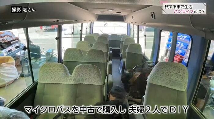 元々は23人乗りのバスで、座席が後ろまで付いていた。車屋さんと一緒に座席を外して空の状態にして、そこから1から作っていった。