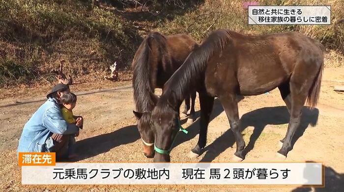 元乗馬クラブの敷地内には現在、馬2頭が暮らしている。オーナーの白井洋行さんの好意でファームの敷地内に堀さん家族も滞在することになった。