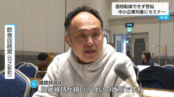 セミナーに参加した事業者からは、コスト上昇を価格に反映しにくい、厳しい現状が聞こえてきた。