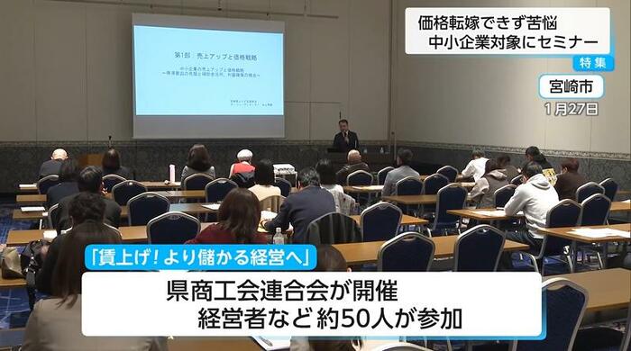 宮崎県内の中小企業が持続的に利益を出し続けるためにはどうすればよいのか。このセミナーは、そうした課題意識から開催された。県内の企業は、コストの上昇を適正に価格に反映させるための経営の工夫を迫られている。