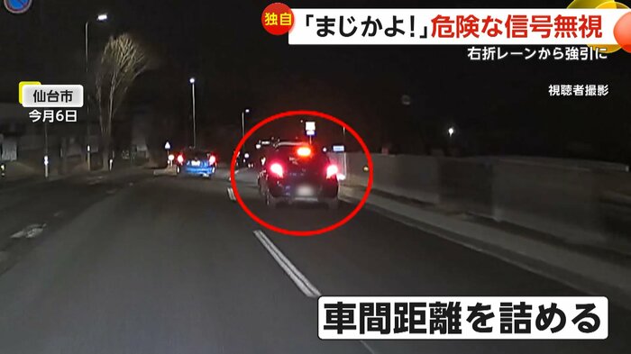6日、宮城・仙台市でカメラが捉えたのは危険運転の瞬間だ。