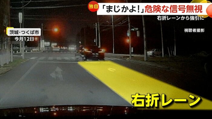 右折レーンから赤信号を無視し、直進して走り去っていく危険な運転が、各地で相次いで目撃された。