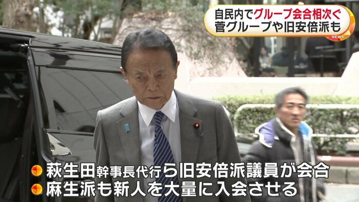 自民党内では25日も萩生田幹事長代行ら旧安倍派の議員が会合を開いたほか、麻生派も新人を大量に入会させるなど、衆院選を受けてのグループの動きが相次いでいる。
