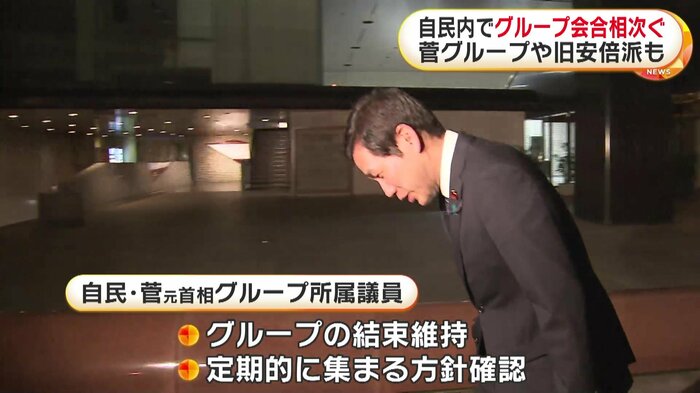 自民党の菅元首相に近い議員らが26日夜に会合を開くなど、自民党内でグループの会合が相次いでいる。