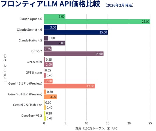 ▲図2:主要LLMのAPI価格比較(2026年2月時点)