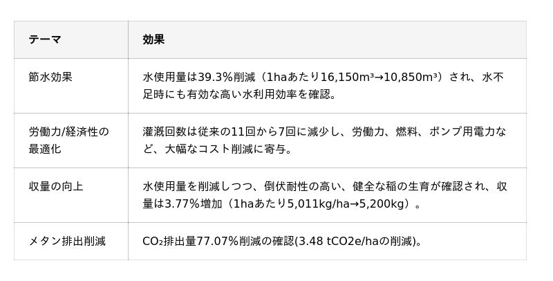 メタンガス排出量77%削減、収量増加、水使用量削減などプラスの影響を発表 | 2026年中に20,000haのプロジェクトへ拡大