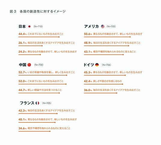 ・創造性の捉え方は、国ごとに明確な文化的特性が見て取れた。