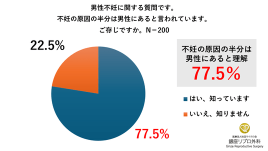 8割近くの妊活中の女性は、男性にも原因があることを理解していた(銀座リプロ外科調べ)