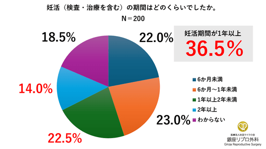 妊活を1年以上続けている女性は4割近くに(銀座リプロ外科調べ)
