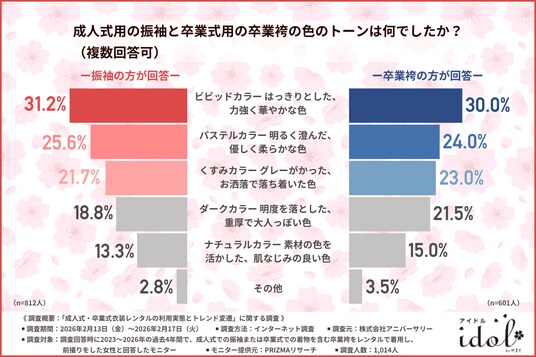 特に、近年トレンドとなっている「くすみカラー」がともに約2割を占めていることから、伝統的な装いの中にも現代的なファッション感覚を取り入れたいという意識が働いているとみられます。