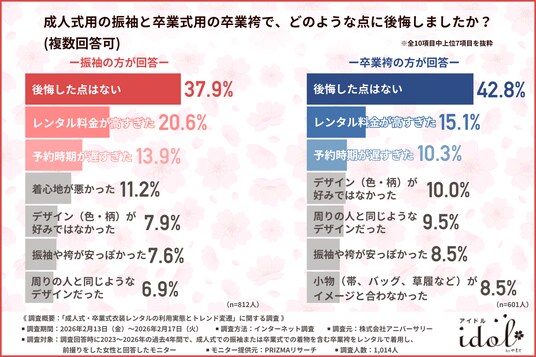 振袖、卒業袴どちらも『後悔した点はない』というポジティブな回答が最多となりました。