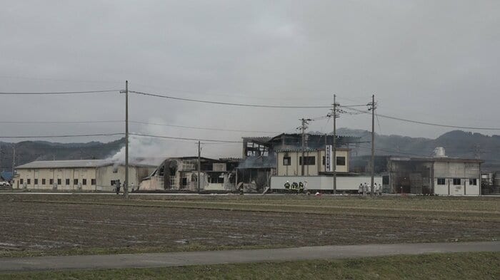 27日未明、富山県高岡市福岡町でプラスチックのリサイクル工場と段ボール製品の製造工場が燃える火事がありました。消防士がやけどをして手当を受けています。