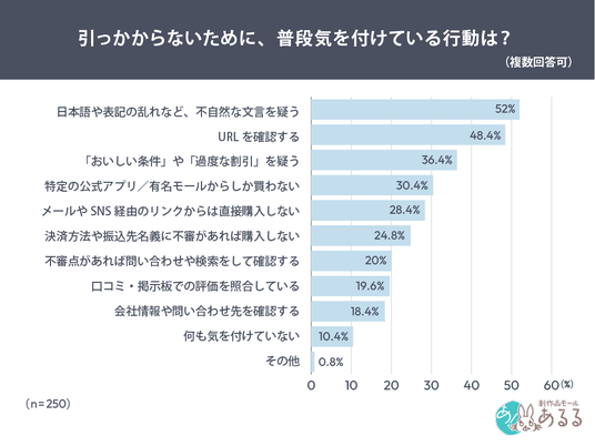 「引っかからないために、普段気をつけている行動」を尋ねたところ