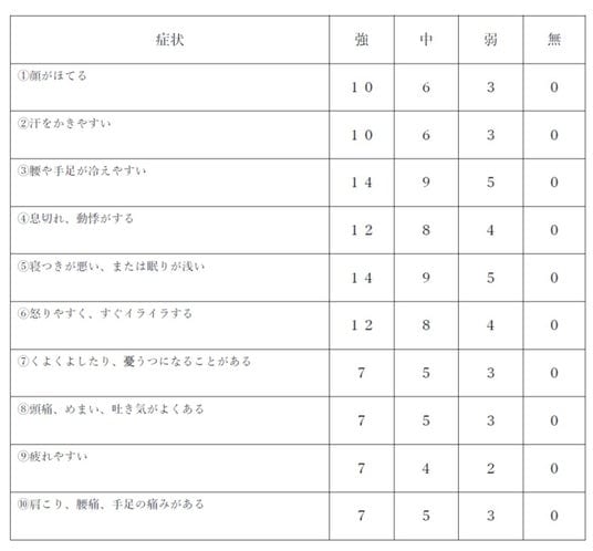 更年期指数の自己採点の評価法(合計点)