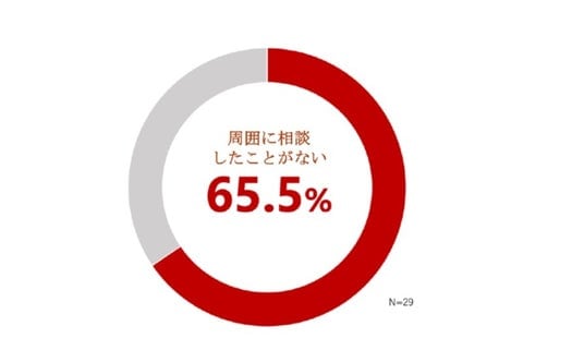 2. 更年期症状を1つ以上有し更年期を過ぎた者で、中等度以上の者※1について、65.5%が症状を周囲に相談したことがないと回答
