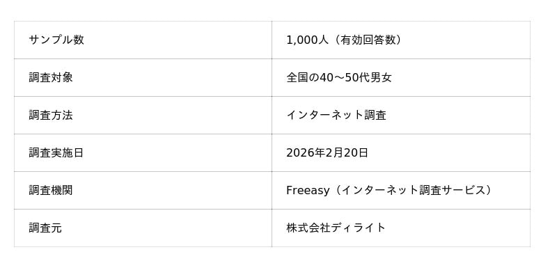 株式会社ディライト(本社:東京都新宿区、代表取締役:高橋 亮)は、2026年2月20日、全国の40~50代男女1,000人を対象に「葬儀社選びの不安に関する調査」を実施しました。