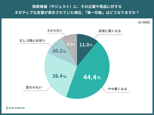 株式会社エルプランニング(東京品川区 代表取締役:中村啓二)は、全国の10代~60代以上の男女500名を対象に「検索エンジンに表示される検索候補(サジェスト)のネガティブワード」に関する調査を実施しました。