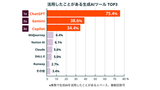 生成AIツールはChatGPTが最多(75.4%)、有料版への投資では83.4%がリターンを実感