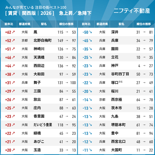 ◆注目の街ベスト100 年間ランキング2026【関西版】