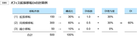 なお、移転前後の賃貸面積の比較ができない「新規開設」はオフィス拡張移転DIの計算対象外である。