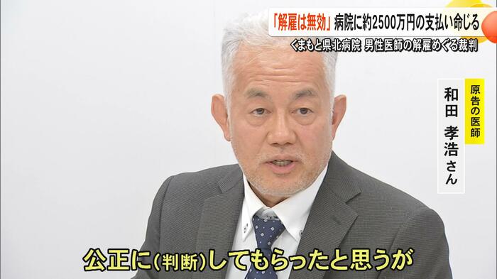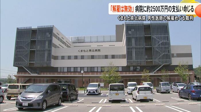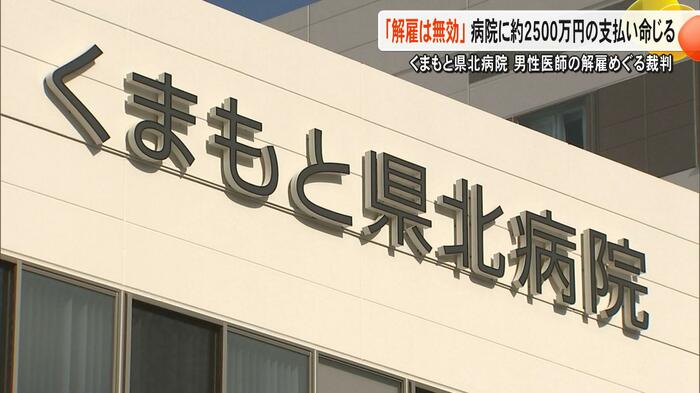 くまもと県北病院に勤務していた男性医師が、諭旨解雇処分となったのは不当だとして、病院側を訴えていた裁判の判決。熊本地裁は2月25日に、男性医師の訴えを全面的に認め、「解雇は無効」と判断。未払い賃金分などとして約2500万円の支払いを病院に命じた。
