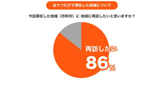 86%の参加者がおてつたびで訪れた地域へ「再訪したい」と回答しています。地域の方と一緒に汗を流し、同じ釜の飯を食べる濃い時間は、卒業後も「ただいま」と帰れる「第2のふるさと(関係人口)」を生み出しています。 また、「初対面の大人と働く」経験は自己成長に繋がり、9割以上が「キャリア・人生に影響を与えた」と回答しています。就職活動での「ガクチカ(学生時代に力を入れたこと)」のエピソードとしても活用している方もいらっしゃいます。