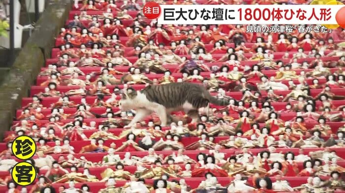 圧巻の光景に誘われてか、人形の中をネコが歩き、訪れた人は一斉に撮影していた。