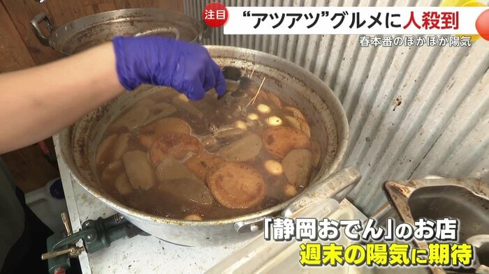 静岡おでんを販売しているお店は週末の陽気に期待しているようで「暖かい方が良い。おでんやっててもビールも出るし、お客さまも多いし」と話した。