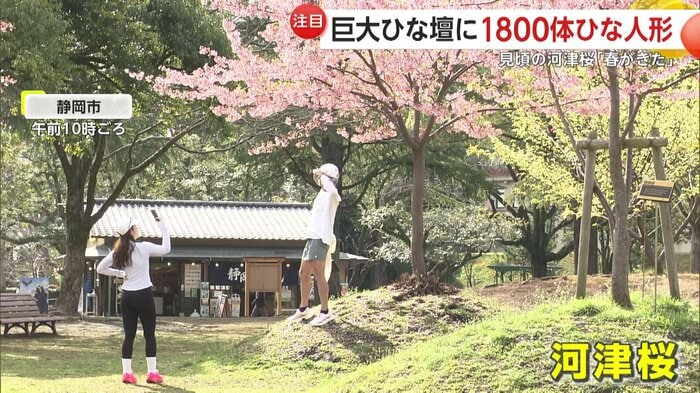 静岡県の駿府城公園では、見ごろを迎えているカワヅザクラに散歩に訪れた人が癒やされていた。
