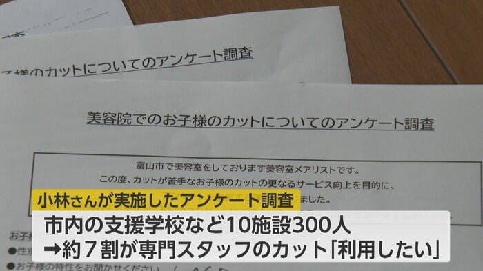小林さんが市内の支援学校などに通う子どもの保護者約300人にアンケートを行ったところ、その7割が専用のカットサービスを「利用したい」と回答した。