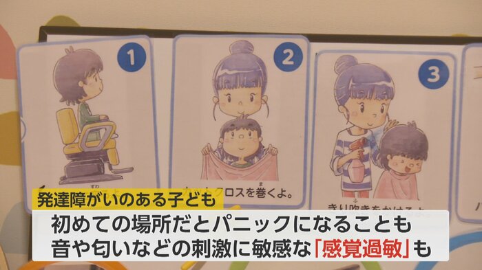 「『感覚過敏』を持つ子どもにとって私たちが普段ふつうに聞こえる音や感触もひとつひとつすごく恐怖と感じることが多い。ハサミの『チョキン』という音、バリカンの音。本当にパニックにつながる恐怖の音に。ドライヤーの音もパニックになってしまう子が多い」