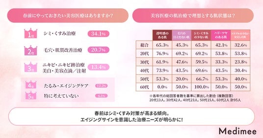 今回の結果からは、春前は“目立つ悩みを改善する施術”と“理想の肌状態を目指すケア”の両方が意識されるタイミングであり、紫外線対策と肌質改善を軸とした美容医療ニーズが高まる時期であることが示唆されました。