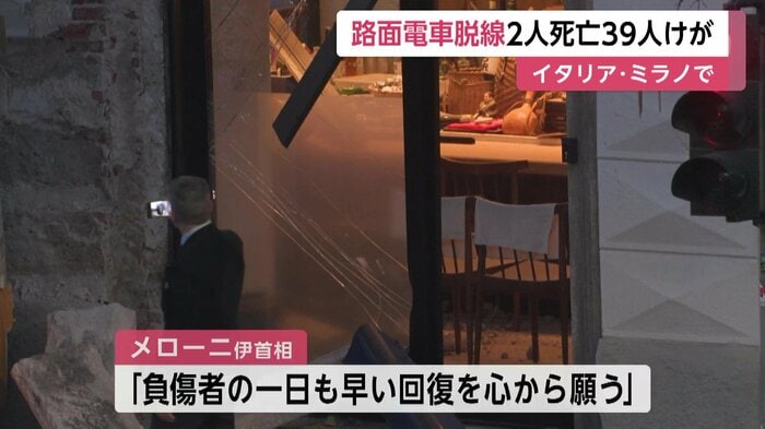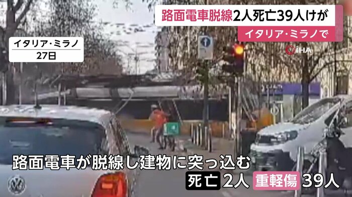 ミラノ中心部で27日、路面電車が軌道を外れて激しく脱線し、沿道の建物に突っ込み、2人が死亡し、39人が重軽傷を負った。
