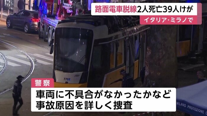 イタリア・ミラノで路面電車が脱線し、2人が死亡、39人が重軽傷を負った。