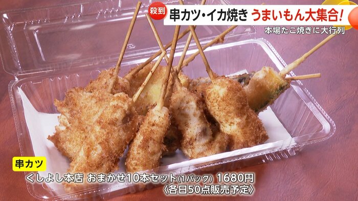 いか焼きなどの「粉もん」や串カツ、さらにヘレカツサンドといったできたてグルメだ。