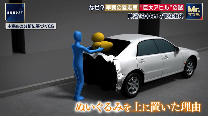 それがなぜ、事故車両の上にあったのか。その謎を、交通事故鑑定の専門家、中島博史氏に分析してもらった。