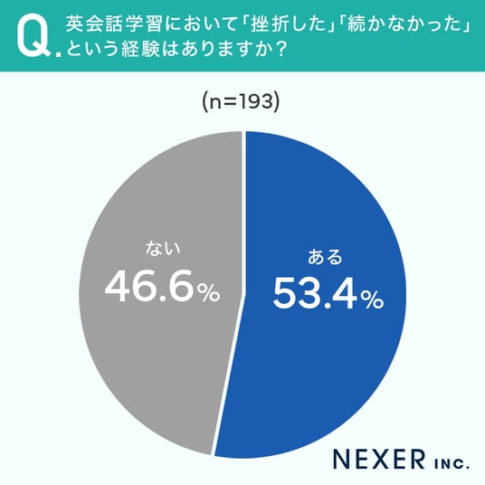 ■53.4%が、英会話学習で「挫折した」「続かなかった」経験が「ある」と回答