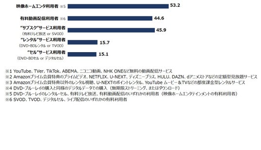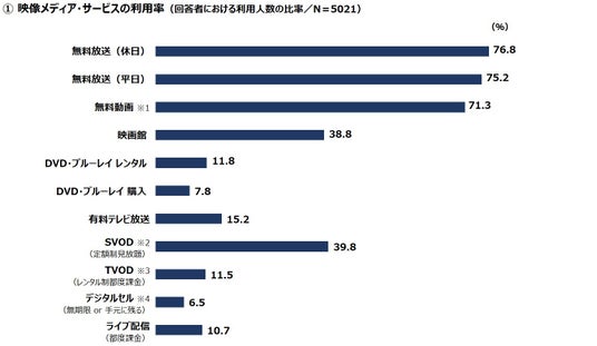 有料の映像メディア利用率は、「映画館」「SVOD」が4割ほどで並ぶ