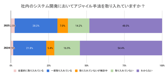 システム開発におけるアジャイル導入は7.4ポイント増と大きく伸長