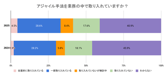 業務でのアジャイル手法採用は3割超え。「全面的導入」は2.4倍に急増