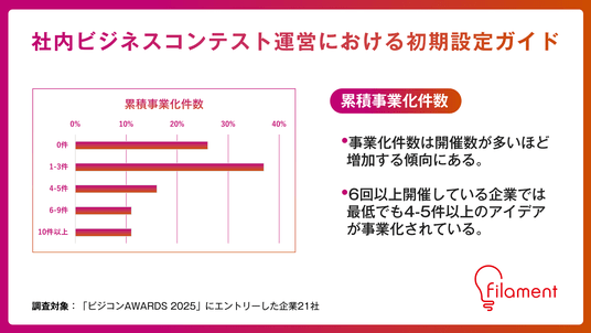 フィラメントは、この実態調査を通じて整理された成功パターンや運営知見を広く共有することで、ビジコン導入企業の成果創出確度を高め、日本企業における新規事業創出の裾野拡大に貢献していきます。