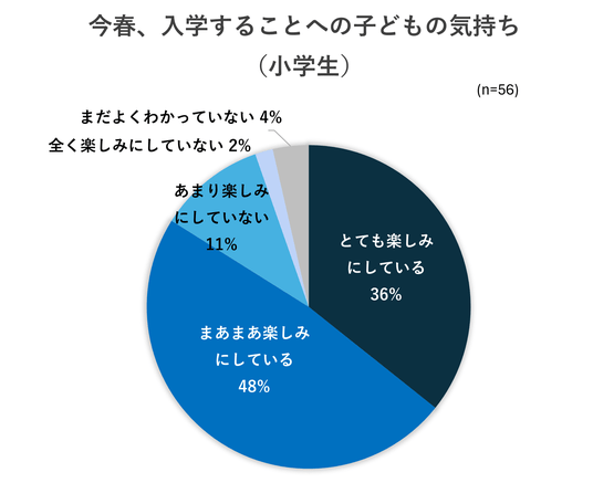 まず、この春、小学校に入学するお子さんがどのように感じているかを保護者にたずねました。
