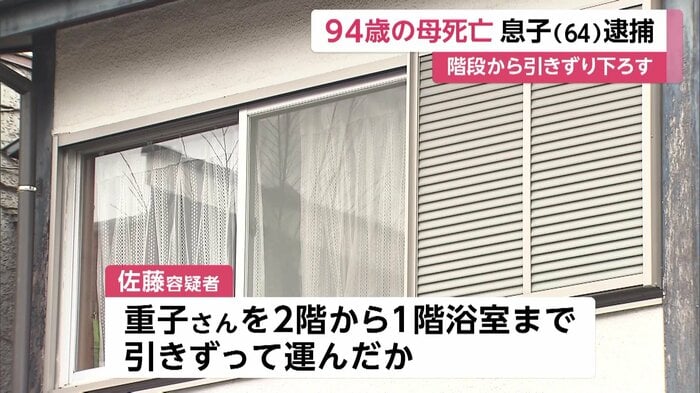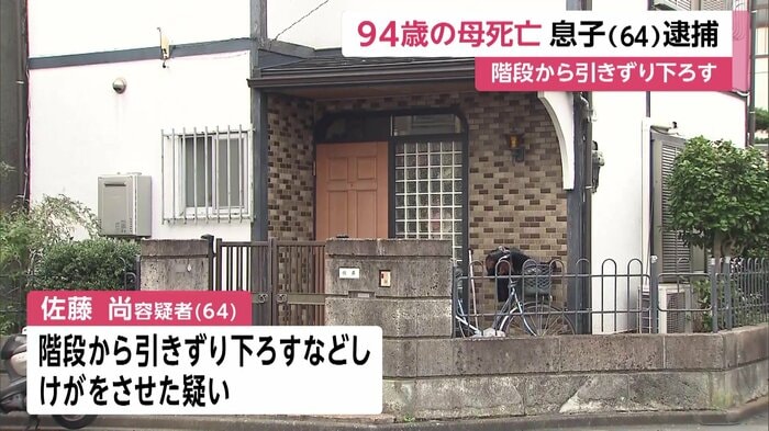 94歳の母親を階段から引きずり下ろしケガをさせた疑いで、64歳の息子が逮捕された。母親はその後、死亡した。