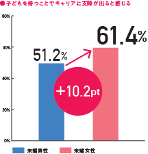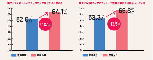・男女ともに半数以上が子どもを産み育てることが仕事・キャリアに影響を及ぼすと感じている