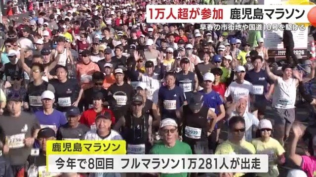 午前8時半に鹿児島市で号砲が鳴らされた鹿児島マラソン2026。フルマラソンには1万281人が出走し、天文館など市街地を駆け抜けて10号線を北上、姶良市重富で折り返すコースに挑んだ。