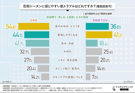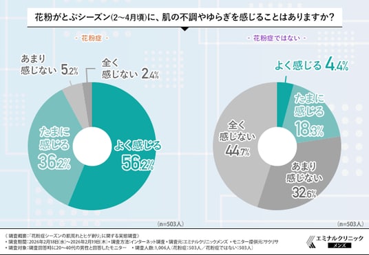 そこで今回、メンズ専用脱毛クリニック・エミナルクリニックメンズは、20~40代の男性を対象に、「花粉症シーズンの肌荒れとヒゲ剃り」に関する実態調査を実施しました。